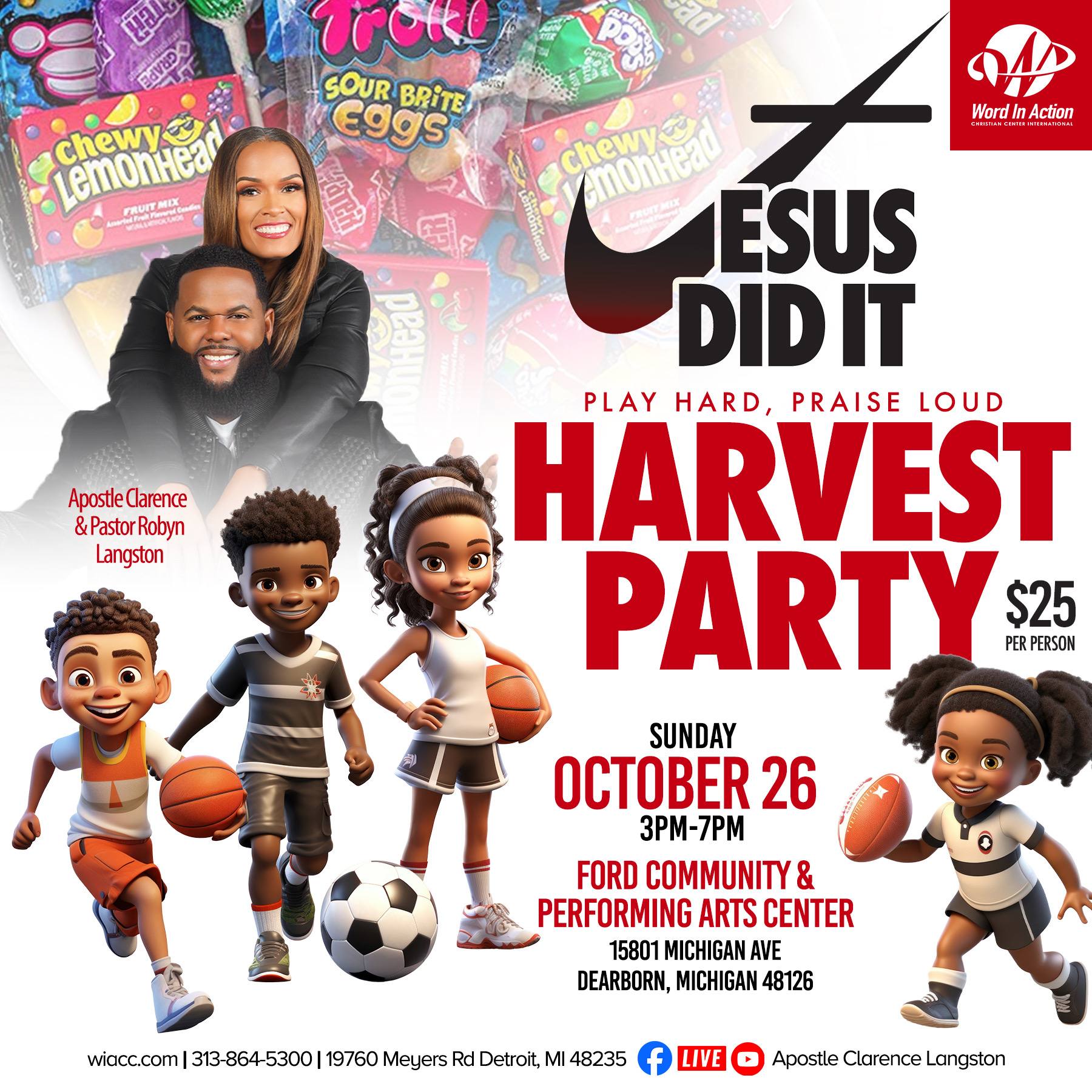 Ready for some fall fun? Join us at Word in Action’s Annual Harvest Party on Sunday, October 26th, from 3 to 7 PM at the Ford Community & Performing Arts Center. For just $25 per person, you get an afternoon packed with family fun! Bounce houses, food, laughter, and so much more await you! Bring your family, friends, and your BEST costumes—just remember, no scary ones! We can’t wait to see you there! Get ready for a harvest celebration like no other!