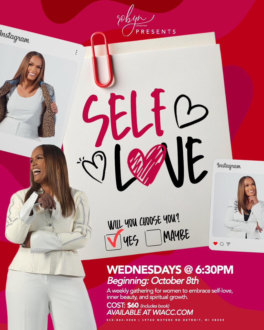 Join Pastor Robyn Langston for an exciting new women’s gathering beginning Wednesday, October 8th at 6:30PM! This weekly experience is designed to help women embrace self-love, discover inner beauty, and grow spiritually. Registration is $60 (includes book). Reserve your spot today here or call 313-864-5300.